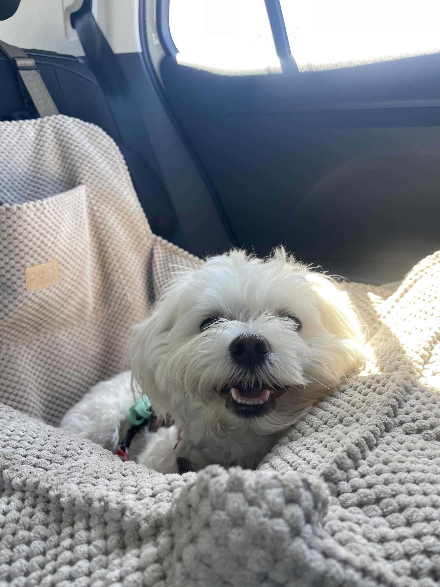 Genialnym rozwiązaniem są foteliki dla psów. I zanim zaczniesz się śmiać, jak cała moja rodzina, gdy po raz pierwszy o takim gadżecie wspomniałam, to przeczytaj do końca. Przede wszystkim to nie są takie foteliki jak dla dzieci, nie skazuję żadnego czworonoga na siedzenie w jakiejś skorupie w bobasowej pozycji. Bardziej przypominają one kosze lub legowiska ze ściankami. Uwielbiam to rozwiązanie za to, że moje psy mają wydzieloną swoją prywatną przestrzeń, która jest stała, niezależnie od tego, jakim samochodem akurat podróżują. Pomaga im to się zrelaksować i czuć bezpiecznie. Łatwo jest budować z nimi pozytywne skojarzenia, pracując początkowo w domu. Zapewniają bezpieczeństwo, bo ograniczają możliwości eksploracji auta w trakcie jazdy. Często są tak skonstruowane, żeby można było z łatwością przypiąć psiego pasażera pasem. Można znaleźć naprawdę mięciusie i milusie foteliki, które jednocześnie zjawiskowo wyglądają. Polecam!